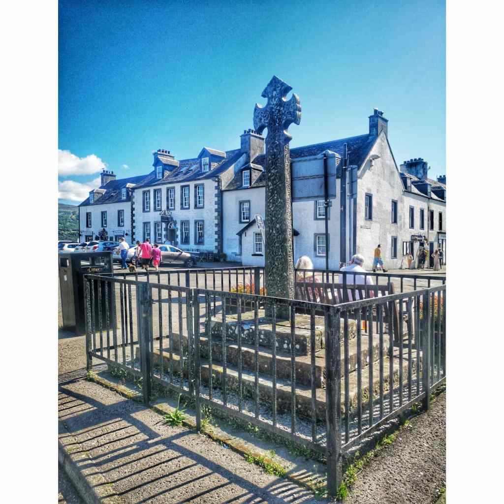 β A beautifully decorated ecclesiastical cross, it is rumoured to have belonged originally in a graveyard before the 3rd Earl of Argyll moved the whole town of Inveraray to New Inveraray, where it has been positioned in front of the harbour since 1839.